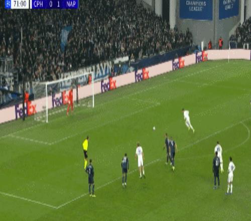 第71分钟,拉尔森点球被扑,随后补射破门,哥本哈根1-1那不勒斯